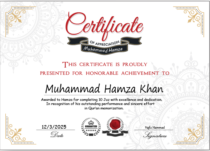 Explore the Certificates and Ijazahs earned by our students who have successfully completed courses like Hifz and Tajweed under our certified online Quran tutors.